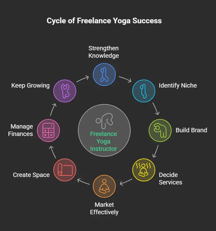 As a freelance yoga instructor, you are not bound to the same place. You can teach many surroundings – yoga studios, wellness centers, business offices or even private homes. Online platforms also allow you to join students all over the world. This freedom to work anywhere gives you a wider access and helps you find out different opportunities.