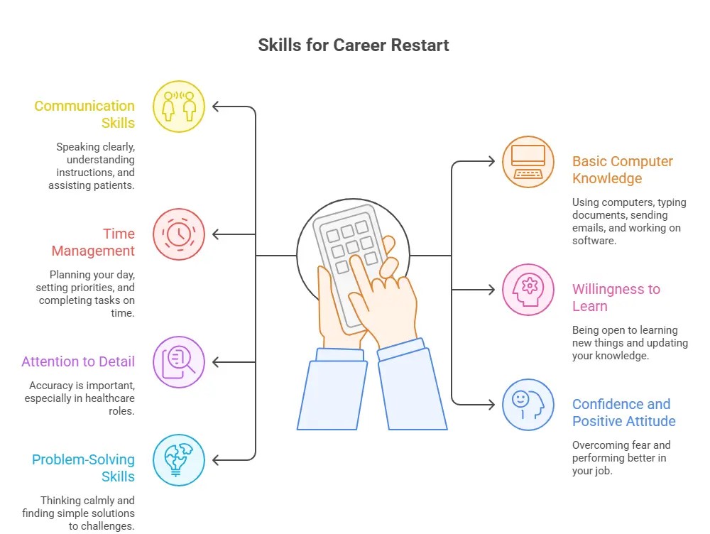 Restarting a career after a break may feel challenging, but building the right skills can make the process much easier. With a mix of basic professional and personal skills, women can confidently step back into the workforce, especially in the healthcare field.