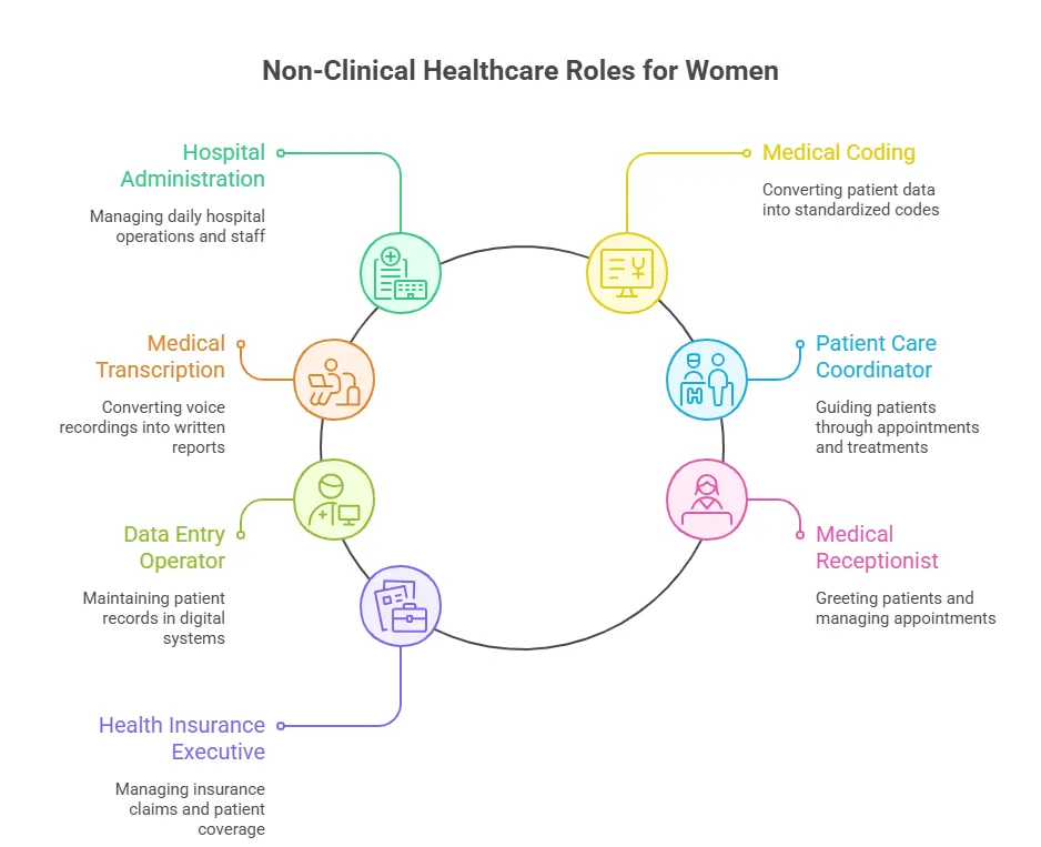 Non-clinical roles in healthcare are a great option for women returning to work, especially if they prefer jobs that do not involve direct patient treatment. These roles are easier to enter, require less technical training, and still offer good career growth and stability.