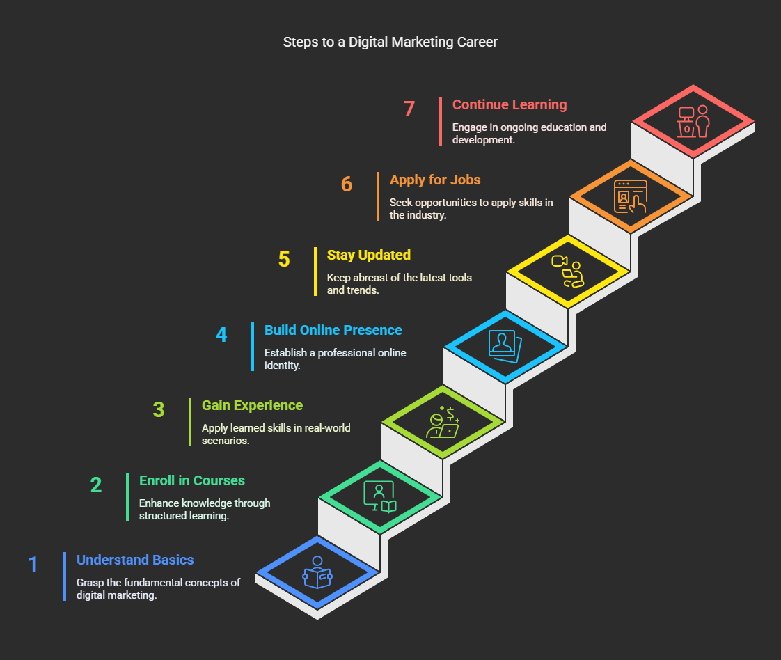 To start a digital marketing career in Kerala, begin by learning the basics through online resources or enrolling in specialized courses. It is essential to gain practical experience, which can be achieved by taking internships, freelancing, or managing personal projects like a blog or social media accounts. Networking within the industry and attending workshops will also provide opportunities to grow.