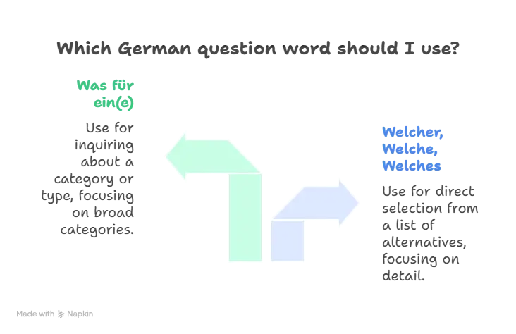 Beginners often make mistakes when they are learning German interrogative words that can change what a question means. Some common mistakes are mixing up cases (wer, wen, wem, wessen), getting “was” and “welcher” mixed up, or copying straight from English without changing the order of the words. As long as you know about these problems, you can ask questions that are normal and right.