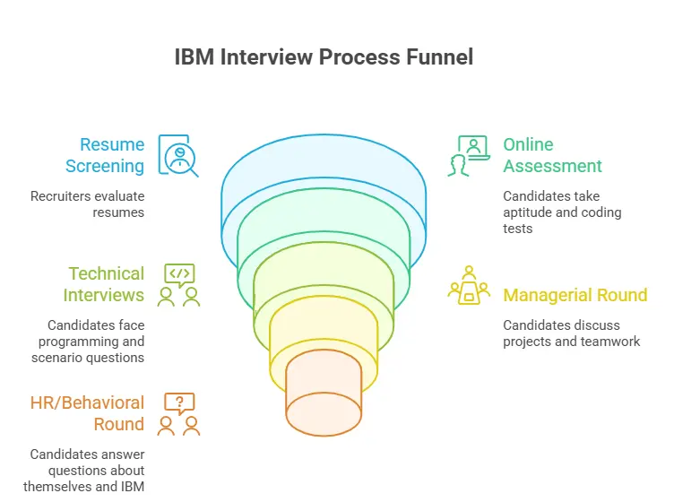 The interview process at IBM is designed to test your technical skills, problem-solving, and communication. It may take 2–6 weeks, and the difficulty level is moderate to high depending on the role. The estimated selection rate is 2–5%, so preparation is important.