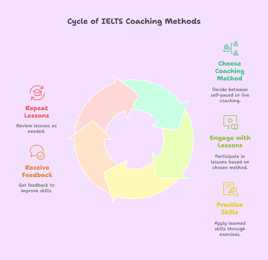 | Feature | Self-Paced Coaching | Live IELTS Coaching |