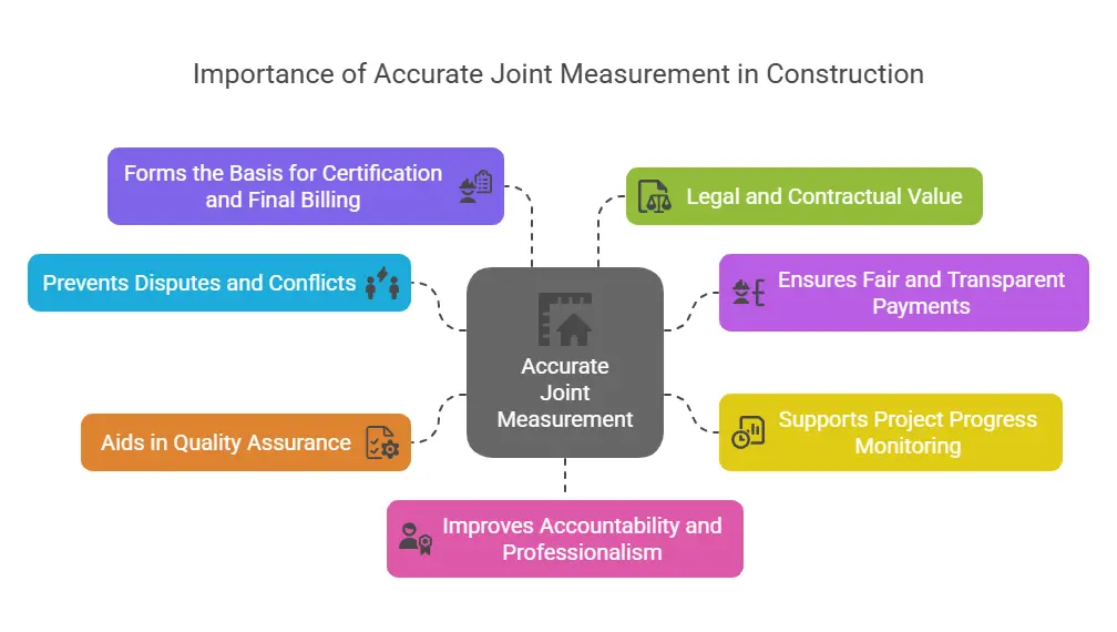 Accurate joint measurement forms the basis for generating contractor bills. If the measurements are incorrect, the payment may either be unfair to the contractor (underpayment) or to the client (overpayment). A precise JMS ensures that the contractor is paid exactly for the work done, maintaining fairness and financial integrity.