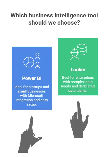 Choosing between Looker and Power BI depends on your company size, data setup, and team skills. Here’s a clear decision flow to help you pick the right tool: