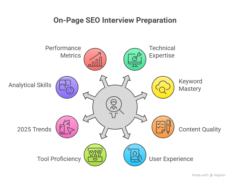 When prepping for on-page SEO interviews, focus on questions that probe these key areas in 2025: