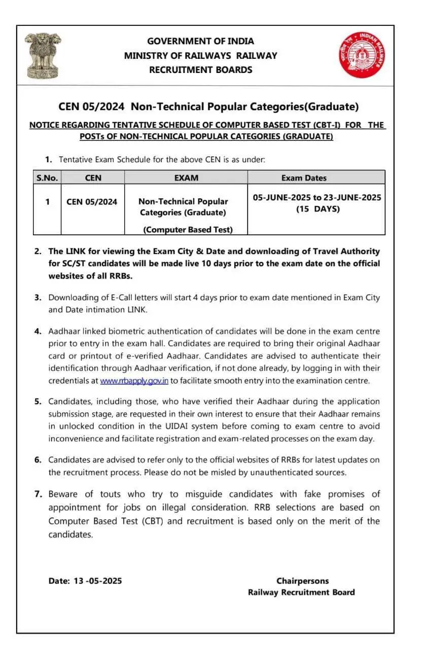 | RRB NTPC Exam Date (CBT 2) | 20 December 2025 |