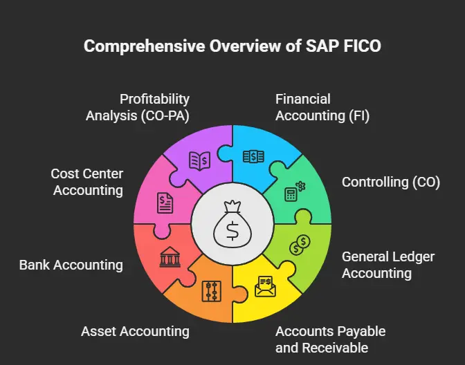 SAP FICO covers a wide range of financial processes that help businesses operate efficiently. Some of the main functions include: