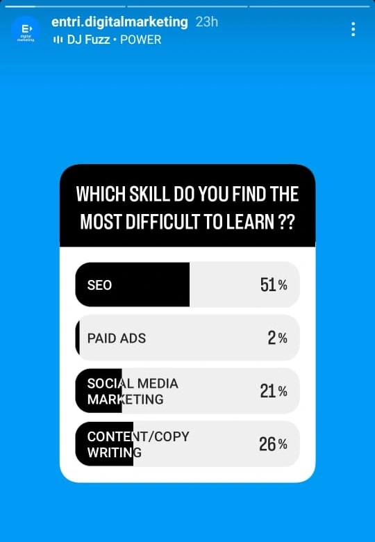 Entri Digital Marketing recently conducted a poll on Instagram (32K+ followers) and YouTube (12K+ subscribers) asking one straightforward question: