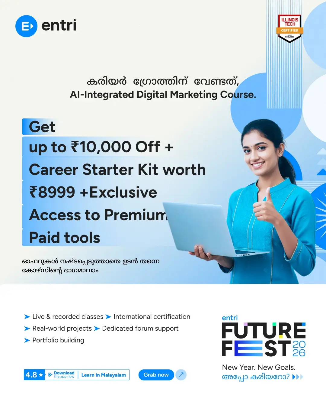 Courses like Entri’s AI Powered Digital Marketers Course guide you on how to blend AI assistance with your own persuasive style, so your copy and creatives stand out.