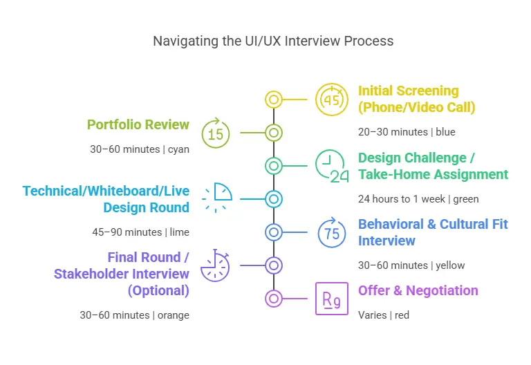 UI/UX interviews test more than just your technical skills. They also see how to solve problems, communicate ideas and understand users. Most companies-especially technical companies and design-focused start-ups lead a step-by-step interview process. Look at what is usually included in each step below.