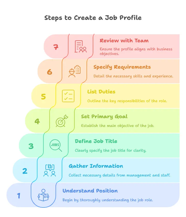 Start with knowing the position you are writing about to build a job profile. Get correct information by speaking with management or present staff members. Then precisely specify the job title, primary goal, and primary duties. Add the knowledge, experience, and reporting system the job calls for. Make sure the profile presents a clear picture of the employment and is simple to grasp. Review it last with your team to make sure it satisfies the objectives of the business. Making a job profile means knowing the function very well and matching it with corporate objectives. Here is the proper approach: